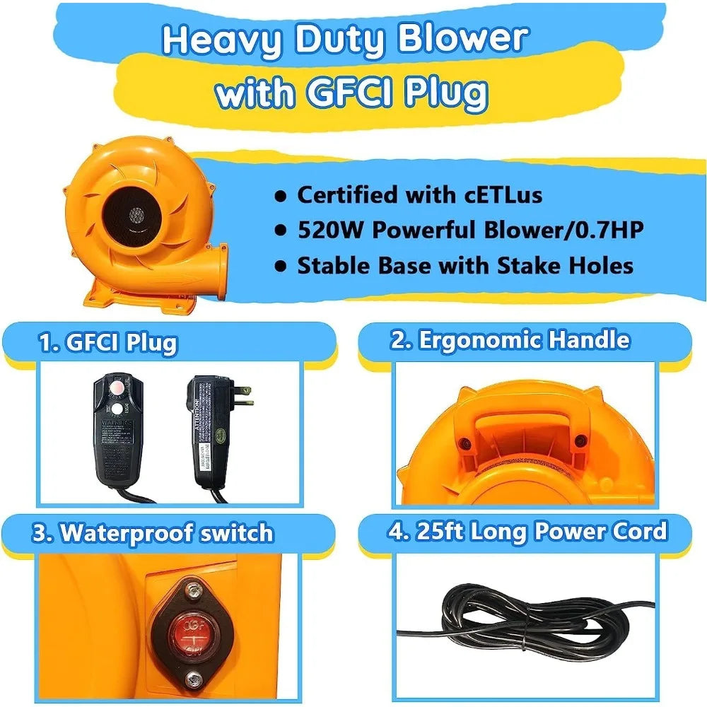 - Durable and Safe Materials: Made from high-quality, puncture-resistant material, this bounce house is built to withstand rigorous play while ensuring safety.